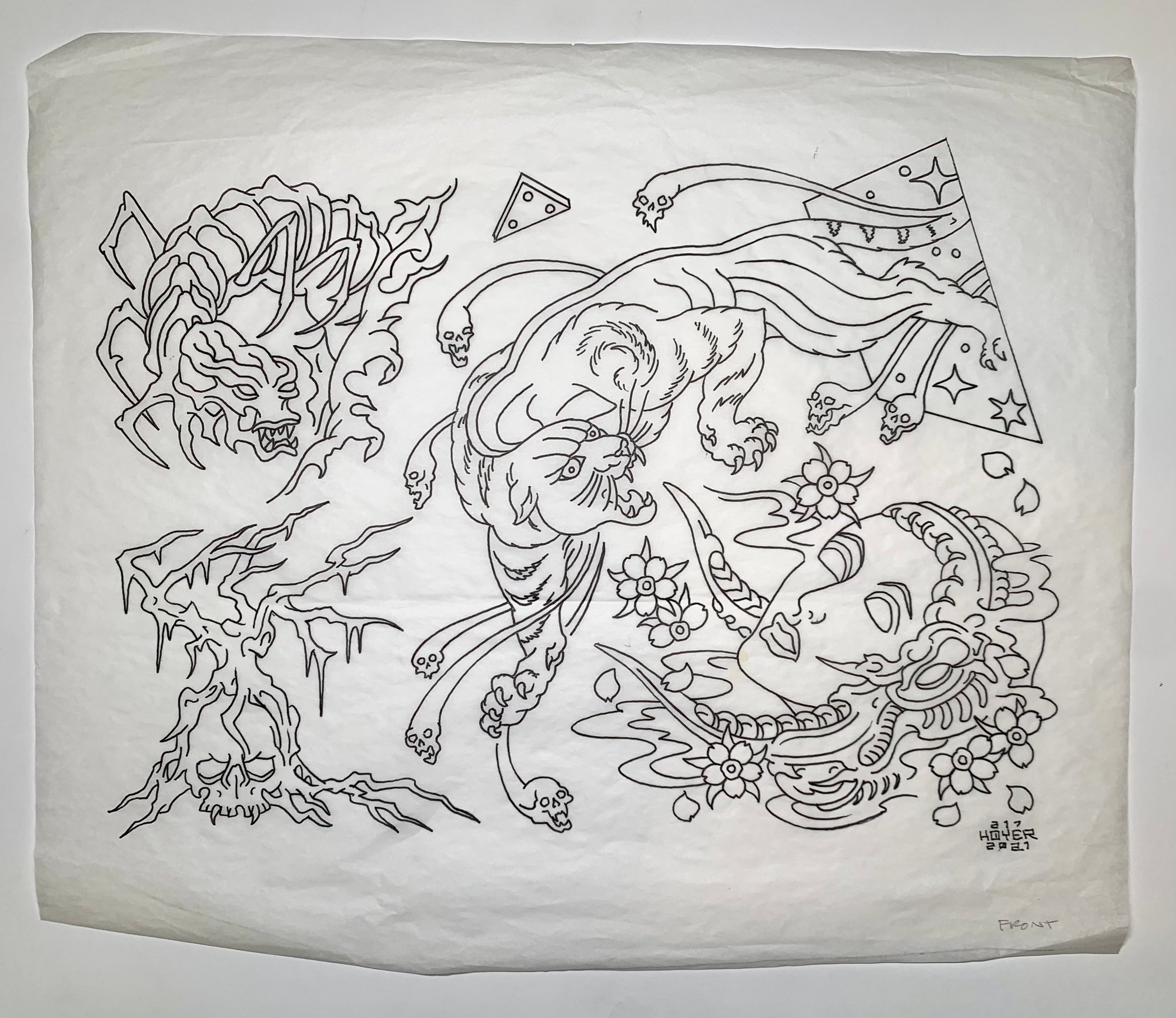 Flash Vol. 1 original line drawing sheet 6, approx. 11” x 14”, ink on paper, 2021.