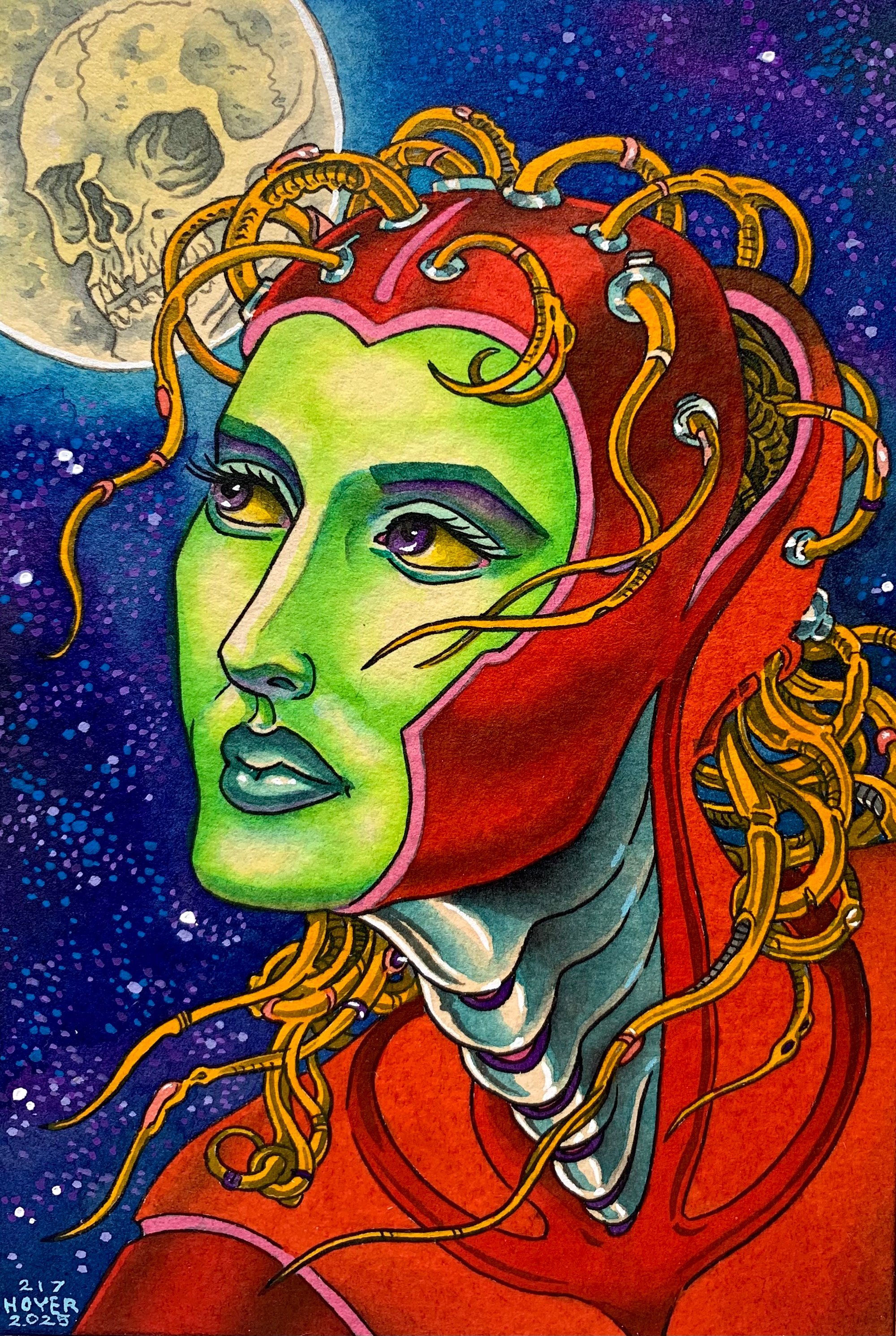 “New Moon”, approx. 5” x 7”, ink/acrylic/gouache on paper, 2025.