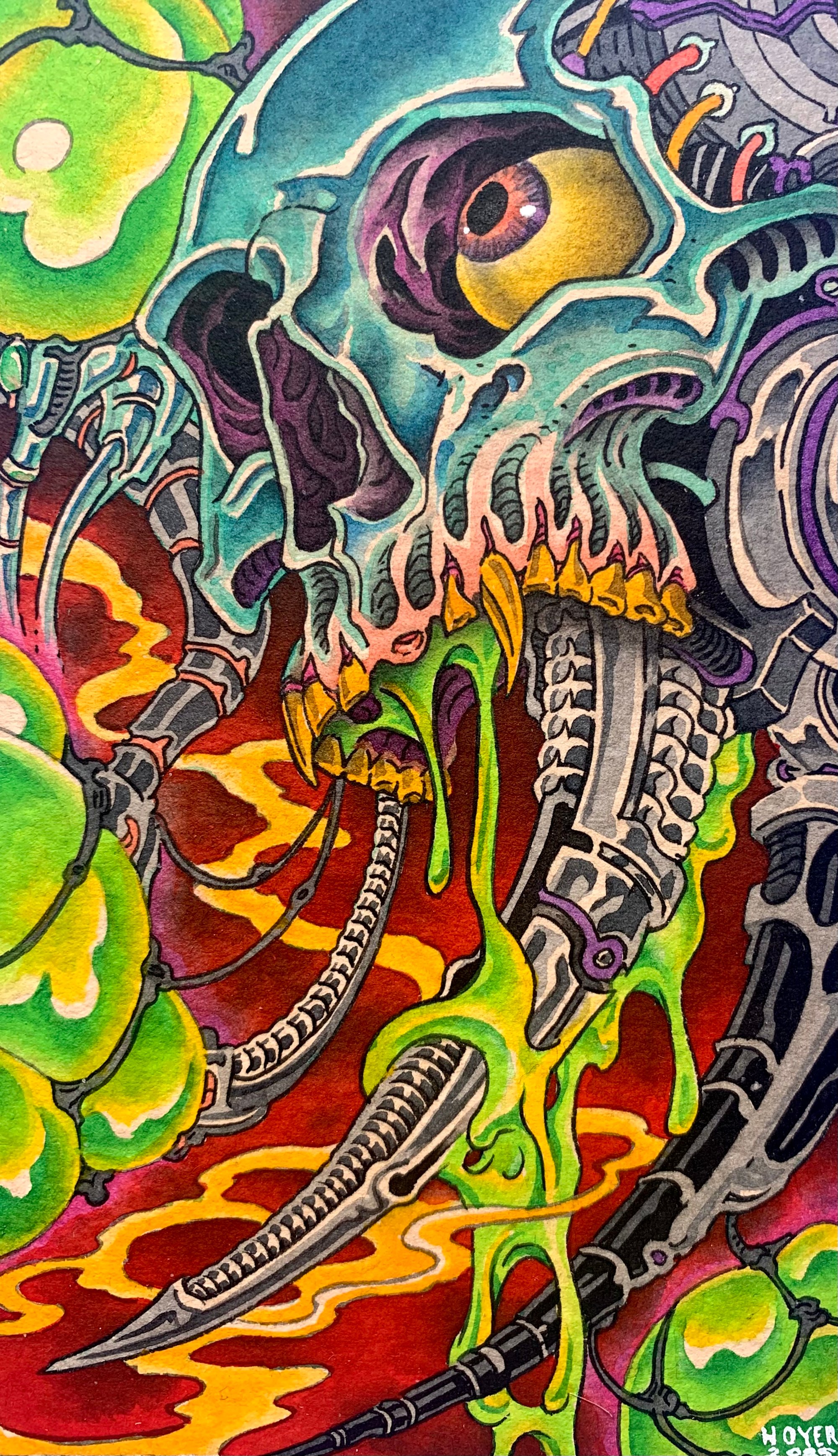 “Radioactve Death”, approx. 5” x 7”, ink/acrylic/gouache on paper. 2025.